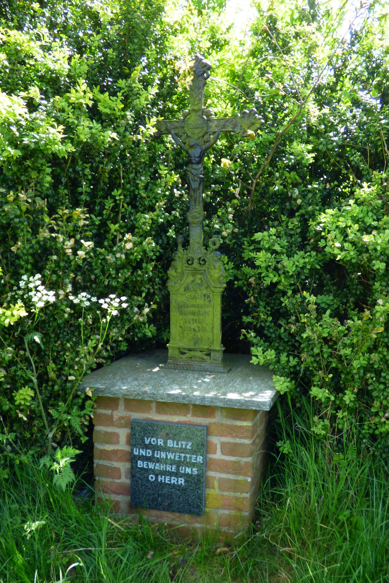 Standort: Das Wetterkreuz hat seinen Standort am Feldweg, der an Haus Nr. 102 beginnt, im Stadtteil Scheifendahl, in der Stadt Heinsberg. Beschreibung: Bei dem Wetterkreuz handelt es sich um eine ca.1,00 m hohes Metallkreuz aus Gusseisen. Das Kreuz steht auf einem gemauerten Backsteinsockel. Auf der Vorderseite des Sockels steht die Inschrift: VOR BLITZ UND UNWETTER BEWAHRE UNS O HERR
