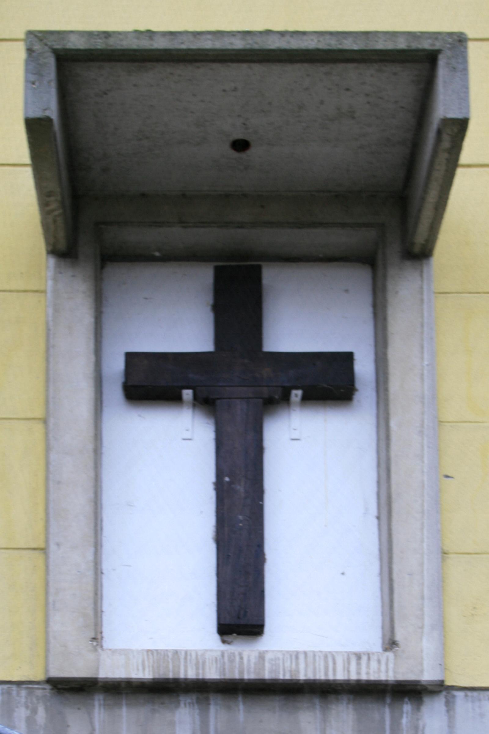 Standort: Das Holzkreuz hat seinen Standort an der Sporthalle in der Schlee, in der Stadt Hückelhoven. Das Holzkreuz steht mit der Nr. 28 in der Denkmalliste der Stadt Hückelhoven unter Denkmalschutz. Beschreibung: Bei dem Objekt handelt es sich um ein ca. 1,50 m hohes Holzkreuz ohne Korpus aus dem Jahr 1879. Eine grundlegende Restaurierung erfolgte 1976 . Ursprünglicher Standort: Ehemaliges Wohnhaus in Hückelhoven, An Romersmühle 108; neuer Standort ab 1976: Nische an der Sporthalle Hückelhoven, In der Schlee. Quellenhinweis: * Denkmalliste Hückelhoven, Nr. 28, Eintrag: 21. Januar 1983 * Dritte Ausgabe 1994: Handbuch des Bistums Aachen ISBN 3-87448-172-7 S. 773