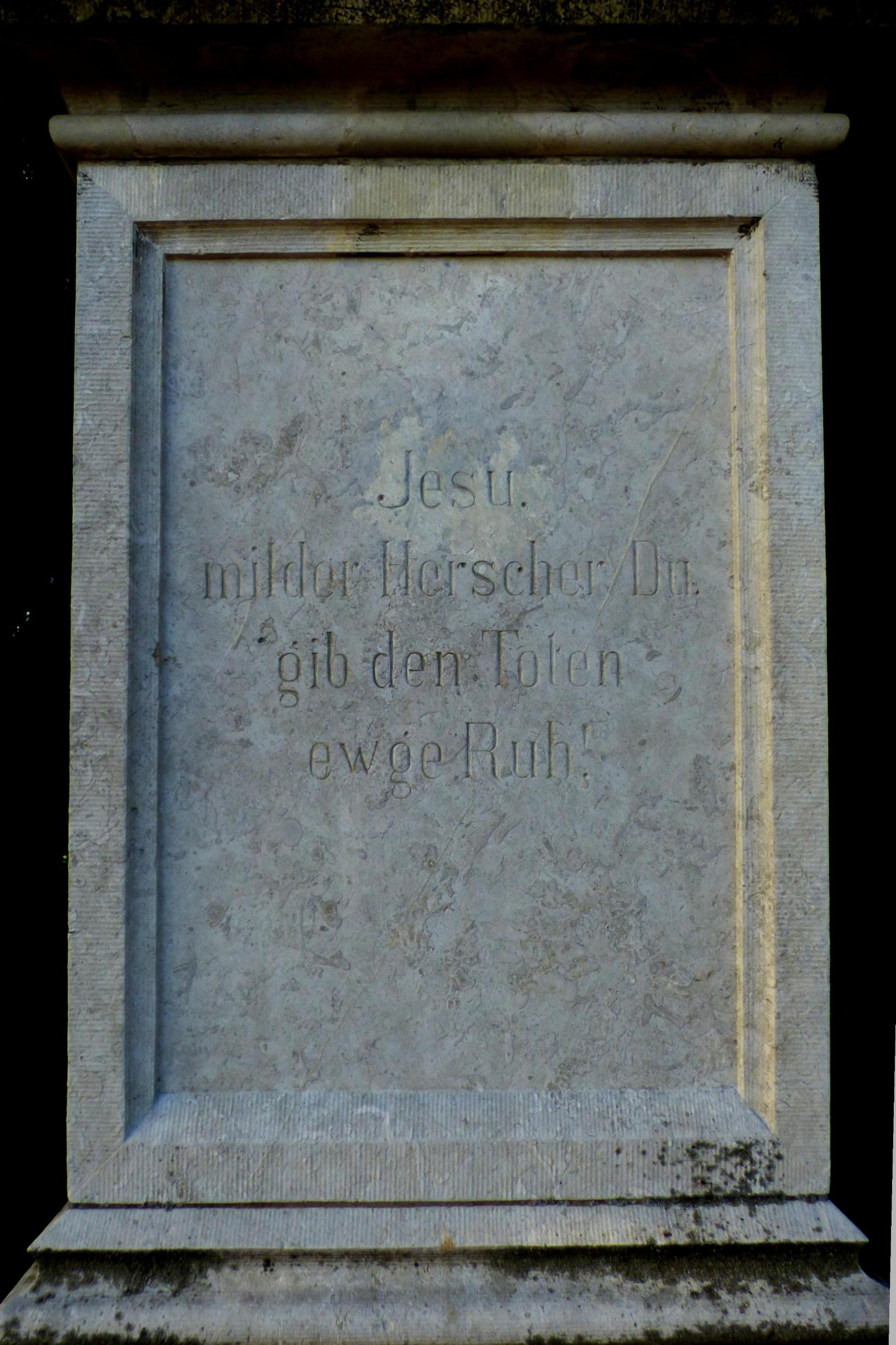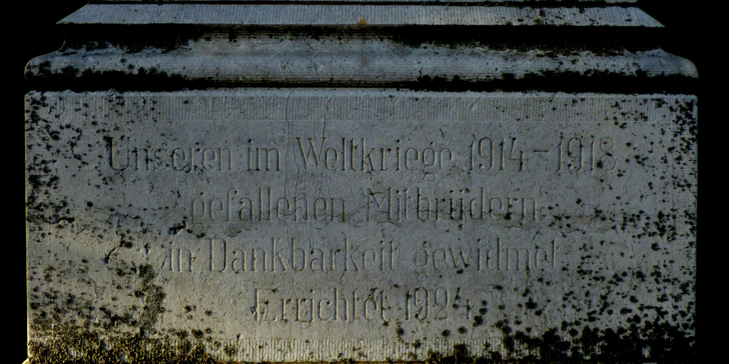 Jesu milder Herscher Du gib den Toten ewig Ruh Unseren im Weltkrieg 1914 - 1918 gefallenen Mitbrüder in Dankbarkeit gewidmet Errichtet 1924