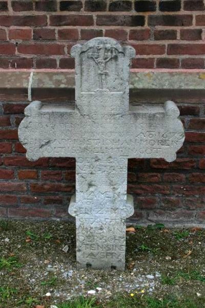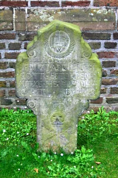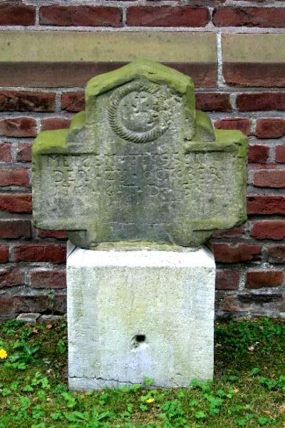 Historische Blaustein Grabsteine an der Kirche St. Laurentius in Elmpt