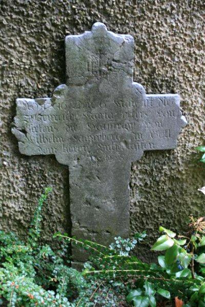 Standort: Die Historischen Blaustein Grabsteine befinden sich in der Kirchenmauer der Pfarrkirche St. Bartholomäus in Niederkrüchten. Die Steine stammen aus dem 17. Jahrhundert. Kirche und Steine stehen mit der Nr. 20 in der Denkmalliste der Gemeinde Niederkrüchten unter Denkmalschutz. Quellenhinweis * Beschreibung der Denkmalbehörde * Denkmal Nr. 20 Gemeinde Niederkrüchten