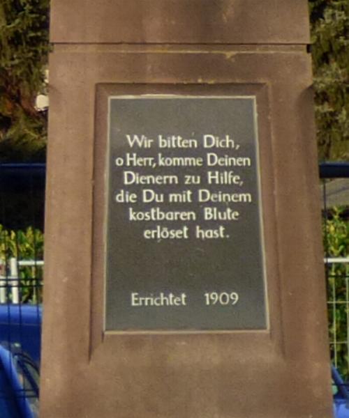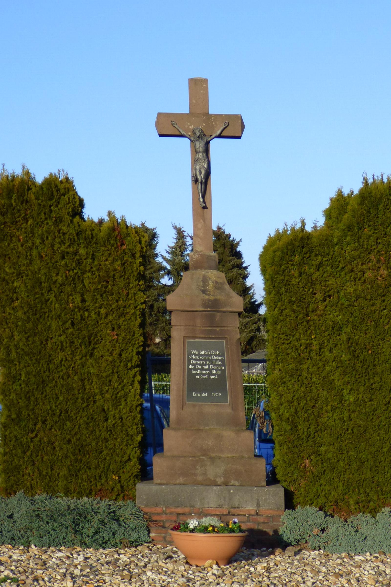 Standort: Das Wegekreuz hat seinen Standort an der Hauptstraße / Josefstraße in der Ortschaft Elmpt Beschreibung: Bei dem Wegekreuz aus dem Jahr 1909 handelt es sich um ein ca. 3,00 m hohes Steinkreuz mit einen Metallkorpus. Die Inschrift des Kreuzes lautet: Wir bitten Dich, o Herr, komme Deinen Dienern zu Hilfe, die Du mit Deinem kostbaren Blut erlöset hast. Errichtet 1909