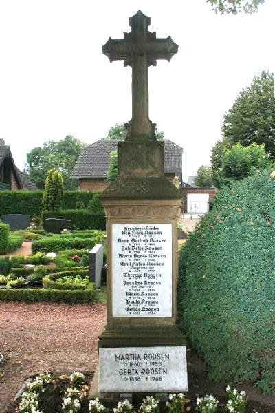 Standort: Der Grabstein Roosen befindet sich auf dem Friedhof Ryther Straße in Niederkrüchten. Er steht mit der Nr. 63 in der Denkmalliste der Gemeinde Niederkrüchten unter Denkmalschutz. Denkmalbeschreibung: Aufwendig