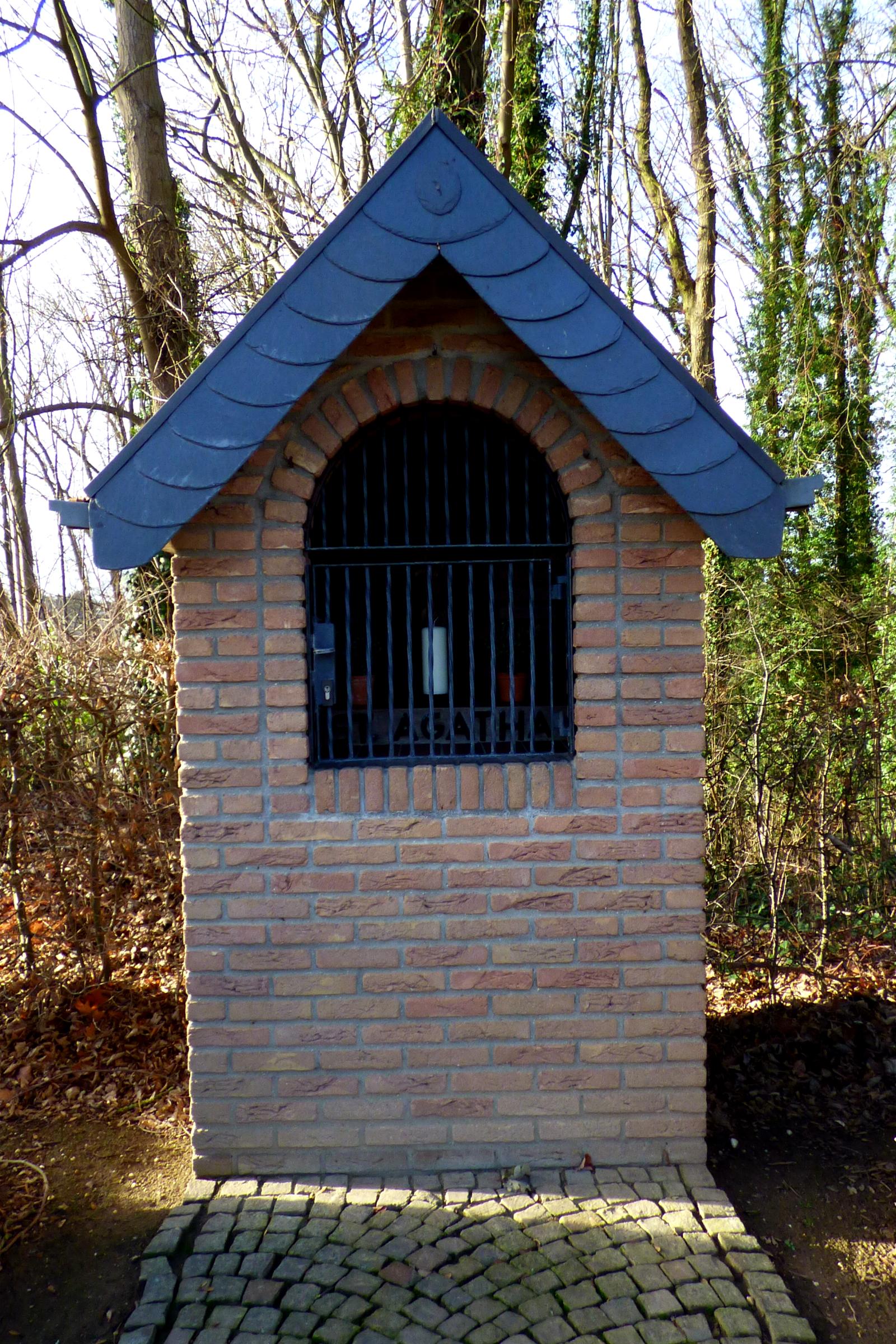 Standort: Der Bildstock der Hl. Agatha hat seinen Standort An der Meer / Schleeker Weg in Oberkrüchten. Beschreibung: Bei dem Bildstock handelt es sich um einen ca. 1,80 m hohen Ziegelsteinbau mit einer rundbogigen Öffnung unter einem Satteldach. Im Innenraum steht eine Heiligenfigur und Blumenschmuck die durch ein Schmuckgitter geschützt sind. Der Bildstock ist ein wichtiges Zeugnis für die Geschichte des Ortes Oberkrüchten und der Menschen.Quellenhinweis: * Dritte Ausgabe 1994: Handbuch des Bistums Aachen ISBN 3-87448-172-7