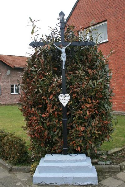 Wegekreuz in Nachbarheide Denkmalbeschreibung: Ende 19. Jahrhundert, Guß- und Schmiedeeisenkreuz mit Korpus, Zementsockel