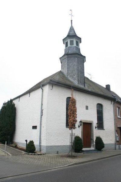 Evang. Kirche in Randerath Denkmalbeschreibung: Ev. Kirchengebäude aus dem Jahre 1718 (Chronogramm über der Tür), Backstein - Saalbau, weiß geschlämmt, verschieferter Dachreiter, Tür mit Blausteingewände.