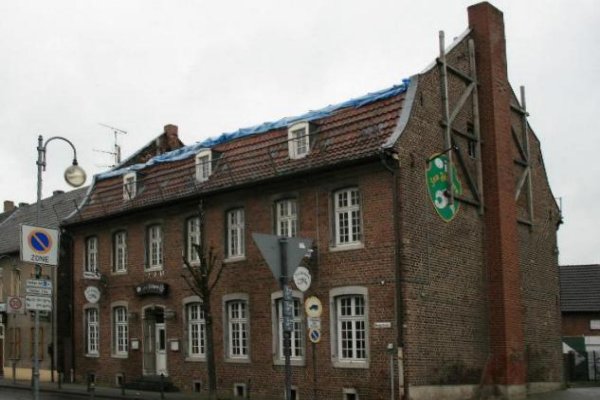 Alte Apotheke in Hückelhoven Denkmalbeschreibung: Zweigeschossiges Backsteinhaus, 7 Achsen, Blausteingewände, Mansarddach, Hofgebäude, zweigeschossig, Satteldach, errichtet 1756, abgebrannt 1790, neu aufgebaut 1791.