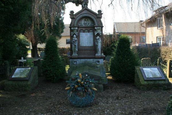 Grabanlage Porten/Bockelkamp in Rurich Denkmalbeschreibung: Familiengruft, Basis und Sarkophag belgischer Grantit, Oberteil roter Granit, reich gegliedert mit 2 Steinfiguren und Marmoreinlagen, 1892 (Inschrift).