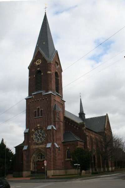 Kath. Pfarrkirche St. Leonhard in Hilfarth Denkmalbeschreibung: Dreischiffige, neugotische Backstein-Hallenkirche mit wenig ausladendem Querhaus, polygonalem Chor und Westturm; 1904-1906 (Grundstein)