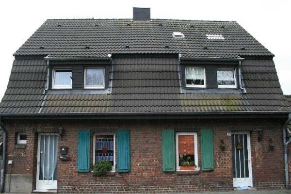 kleinen Satteldächern in das Hauptdach des Wohnhauses eingekehlt. Das