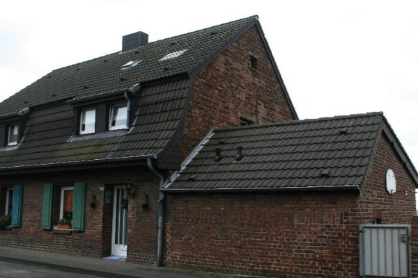 Haustrennwand, eingeschossig mit voll ausgebautem Mansarddach. In der
