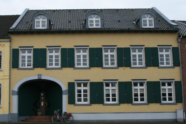 Wohnhaus in Hückelhoven Denkmalbeschreibung: Zweigeschossiges Wohnhaus, Satteldach, 6 Achsen, ehemals Backstein, neuer Putz, Toreinfahrt über 2 Achsen, 19. Jahrhundert. Es wird nur die Fassade unter Denkmalschutz gestellt.