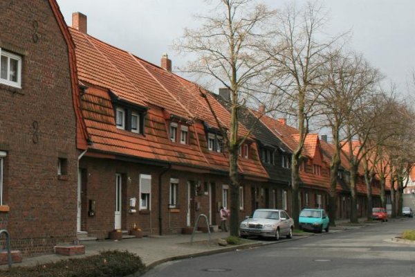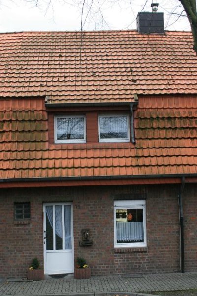 Wohnhaus (Bergarbeitersiedlung) in Hückelhoven Denkmalbeschreibung: Bergarbeiterwohnhaus als Teil einer langen Hauszeile, die in den Fluchten und Höhen nicht versetzt ist. Massives Gebäude,