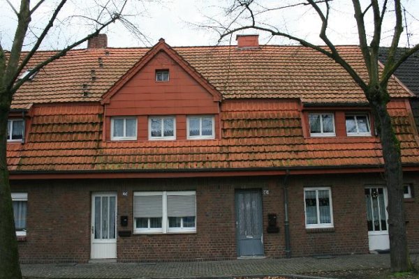 Wohnhaus (Bergarbeitersiedlung) in Hückelhoven Denkmalbeschreibung: Bergarbeiterwohnhaus als Mittelhaus einer langen Hauszeile, die in den Fluchten und Höhen nicht versetzt ist. Massives Gebäude,