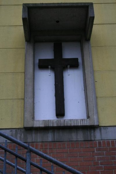 Holzkreuz an der Sporthalle in Hückelhoven Denkmalbeschreibung: Holzkreuz mit Holzkorpus;