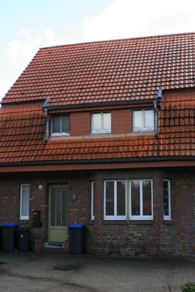 Wohnhaus (Bergarbeitersiedlung) in Hückelhoven Denkmalbeschreibung: Bergarbeiterwohnhaus als Teil der Platzumbauung. Massives Gebäude, teilunterkellert, eingeschossig mit vollausgebautem Mansarddach, traufenständig. Abweichend vom Regelhaustyp ist der Wohnzimmerbereich erkerförmig mit polygonalem Grundriß unter dem normalen Dach vorgebaut. Mauerwerk in Ziegelstein, Tür- und Fensteröffnungen mit stark profilierten Betonstürzen überdeckt. Holzbalkendecken, Holzdachkonstruktion mit Tonpfanneneindeckung. In der Mittelachse des Daches ist eine langgestreckte Dachgaube vorhanden. Das Gaubendach ist in das Oberdach des Mansarddaches integriert. Holztüren und Holzfenster.Gesamtansicht Friedrichplatz 2 - 12
