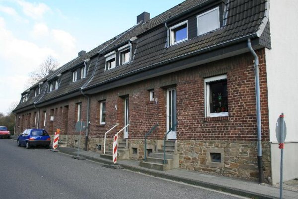 backsteinseitig. Rückwärtig dreigeteilte Toiletten-/Stallhäuschen. Bergarbeiter-Siedlungshäuser,