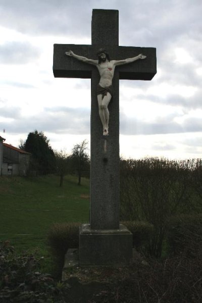 Wegekreuz in Ratheim Denkmalbeschreibung: Werkstein mit Korpus, früher altes Holzkreuz, 1935
