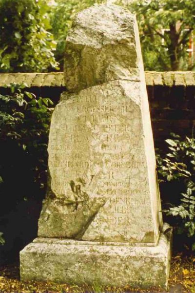 Denkmal Familie Blancke - Faber in Hückelhoven (Foto: Stadt Hückelhoven 1982) Denkmalbeschreibung: Obelisk auf Sockel, Oberteil beschädigt, Blaustein; 1832 (Inschrift).