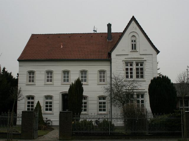 Denkmalbeschreibung: Datierung: 19. Jahrhundert; fünfachsiges zweigeschoßiges Gebäude mit Bänderputz und schmiedeeisernes Gitter aus der Bauzeit (Vorgarten); stichbogige Öffnungen mit Stuckgewänden; Satteldach mit Aufschubling; Dacheindeckung mit Rheinlandpfannen. rechter Gebäudeteil: Datierung 1900, Putzeckquaderung und Giebelfeld mit rundbogiger Aussparung für Fenster im Erd- und Obergeschoß durch Stuckverzierung mit Formelelementen im Sturz.