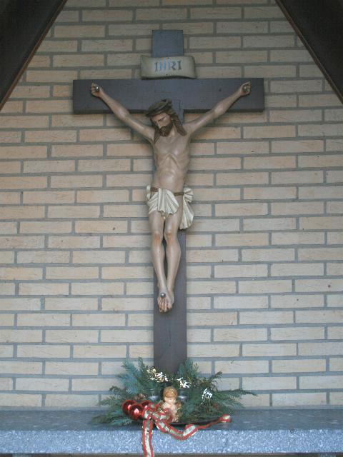 Denkmalbeschreibung: Kruzifixus in einer modernen Kapelle. Mitte des 19. Jahrhunderts gefaßt an einem neuen Kreuz.