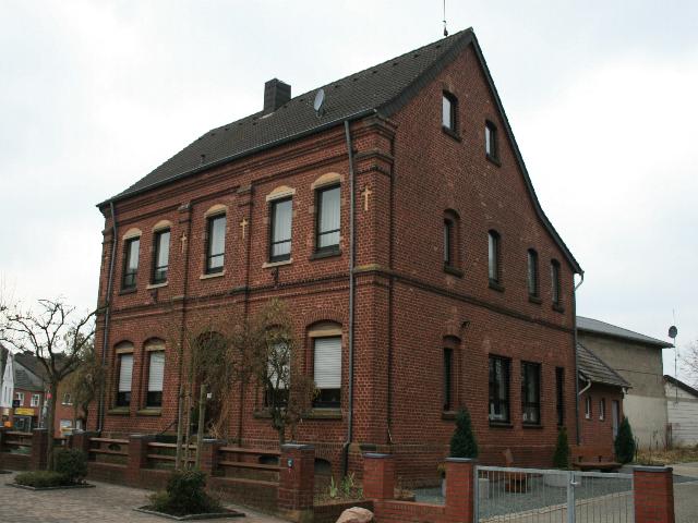 Denkmalbeschreibung: Zweigeschossiges, fünfachsiges Ziegelgebäude mit Satteldach. Die Fassade ist durch Eckpilaster betont. Ebenso ist die Eingangsachse durch Pilaster, ähnlich den Eckpilastern, betont. Die Geschosse werden durch Gesimse gegliedert. Im Obergeschoß der Pilaster sind Kreuze in gelbfarbigen Klinker eingelassen. Die Fenster verfügen über Sandsteinsohlbänke und Kämpfersteine. Ebenso sind die Stürze aus Sandstein. Im Obergeschoß überdecken gelbfarbige Steine den Sturz unterhalb des Entlastungsbogen. Die Hauseingangstüre über der fünfstufigen Basalttreppe ist zweiflügelig. Die Eingangstreppe ist durch seitlich Mauervorlagen begrenzt. Die Mauervorlagen sind durch Basaltsteine abgedeckt.. Die Giebel waren ursprünglich zweiachsig. Eine Veränderung der Nachkriegszeit. Hofseitig ist ein zweiachsiger Anbau angeschleppt. In den modernisierten Räumen befindet sich ein Wandschrank mit Glastüren aus der Erbauerzeit mit einer Datierung Anno 1828. Der Schrank ist verziert mit einem Architrav, auf dessen Konsolen z. Z. Heiligenfiguren stehen. Seitlich Verzierung durch Engelsköpfe.