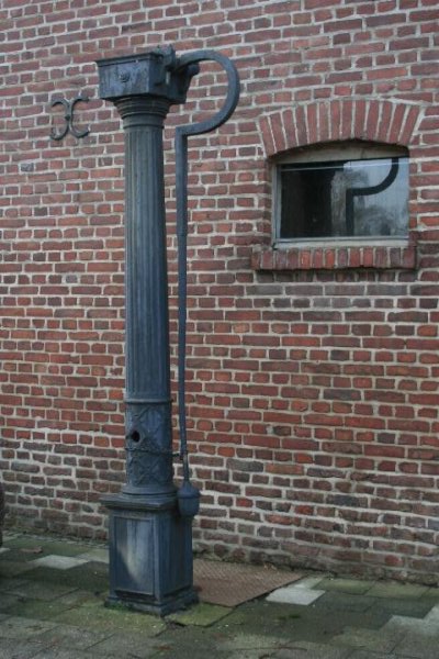 Wasserpumpe in Aldenhoven - Dürboslar Denkmalbeschreibung: 1.H. 19. Jh.; ca. 3 m hohe Wasserpumpe aus Gußeisen, profilierter Sockel, kannelierter Schaft, Handgriff in Form einer Eichel. Bedeutend für die Geschichte des Menschen, erhaltenswert aus wissenschaftlichen, besonders ortgeschichtlichen sowie städtebaulichen Gründen. |