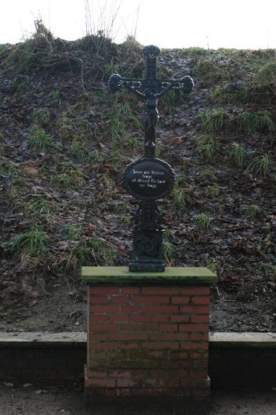 Denkmalbeschreibung: 2. H. 19. Jh.; gusseisernes Wegekreuz auf neuem Backsteinsockel, ca. 1,50 m hoch, neugotische Ornamentik mit eingerahmtem Schriftfeld, gußeisener Korpus. Bedeutend für die Geschichte des Menschen, erhaltenswert aus künstlerischen, wissenschaftlichen, besonders ortsgeschichtlichen sowie volkskundlichen Gründen.