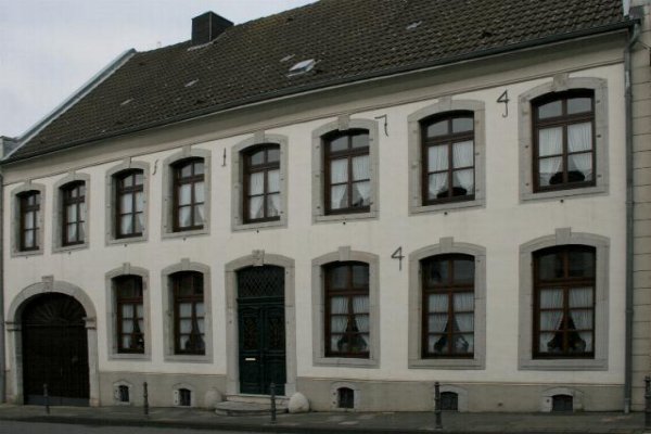Wohnhaus einer Hofanlage in Aldenhoven Denkmalbeschreibung: Inschriftliche Datierung im Keilstein des Torbogens 1791, in Mauerankern 1744; Wohnhaus einer Hofanlage, Backstein, 2geschossig, traufenständig; Traufstein zu 8 Achsen, Eingang in der 4. Achse von rechts, Blausteintreppe mit gerundetem Auftritt, doppelflügelige Tür des späten 19.Jh.mit Oberlicht; Tür und Fenster mit gestuften Werksteingewänden mit Keilstein; Keilstein des Türsturzes mit Palmettenrelief; in den beiden linken Achsen eine korbbogige Tordurchfahrt mit reliefiertem Keilstein; Fenster mit Ganzglasscheiben; Satteldach; Wirtschaftsgebäude neu, Backstein verputzt. Bedeutend für die Geschichte des Menschen, erhaltenswert aus wissenschaftlichen, besonders architektur- und ortsgeschichtlichen sowie städtebaulichen Gründen.