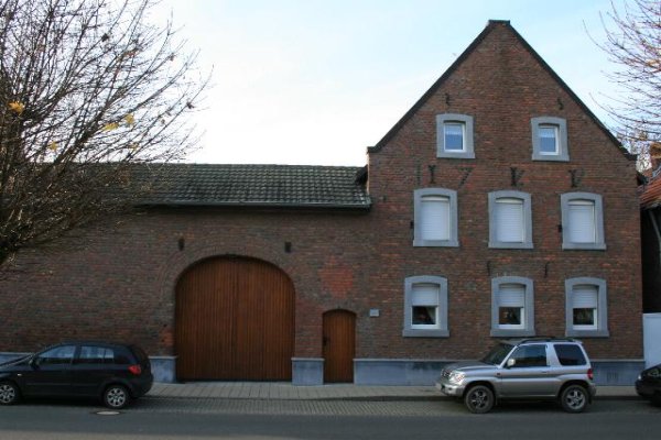 Hofanlage mit Wohnhausfassade in Aldenhoven - Siersdorf Denkmalbeschreibung: Inschriftlich datiert 1766; 4 flügelige Backstein-Hofanlage, Wohnhaus giebelständig zu 3 Achsen, 2 geschossig, Fenster stichbogig mit verputzten Gewänden, neue Ganzglasfenster; Satteldach, links anschließend Wirtschaftsgebäude mit korbbogiger Tordurchfahrt und kleine Fußgangerforte. Bedeutend für die Geschichte des Menschen, erhaltenswert aus wissenschaftlichen, besonders architektur- und ortsgeschichtlichen sowie städtebaulichen Gründen. |
