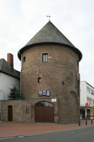 Alter Turm in Aldenhoven Denkmalbeschreibung: 2. Hälfte 15. Jh. Erneuerung nach Kriegsschäden im OG; Rundturm aus Backstein mit Kuppelgewölbe und kegeliger Haube, erhalten als Rest des NW-Tores der ehem. Befestigungsanlage. Durchgang nachträglich eingebrochen. Rest des westlichen Stadttores, das als Doppelturmtor gestaltet war. Bedeutend für die Geschichte des Menschen, erhaltenswert aus wissenschaftlichen, besonders architektur- und ortsgeschichtlichen, sowie städtebaulichen Gründen.