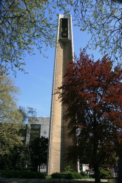 griechischem Kreuz, einzelstehender obeliskartiger Glockenturm auf