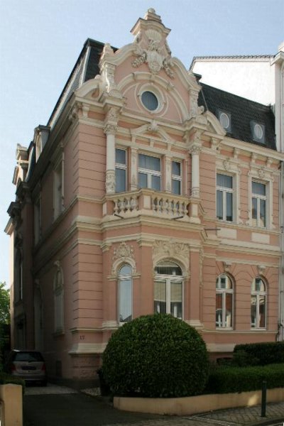 Inschrift 1891. Neobarocke Halbvilla, straßenseitig ´zu drei Achsen,