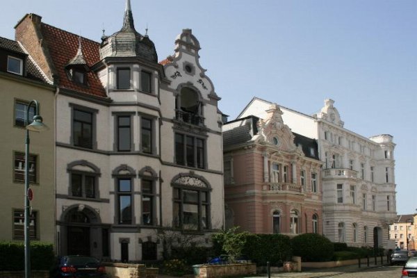 zweigeschossig mit Giebelgeschoß, aufwendige Stuckfassade mit Erker und