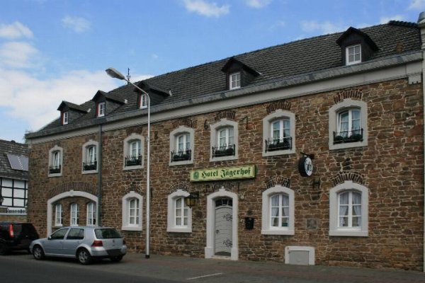Jägerhof in Düren - Rölsdorf Denkmalbeschreibung: Sogenannter „Jägerhof“ Monschauer Straße 217, Hofanlage aus dem 18. Jh. – 19. Jh. Ehemalige dreiflügelige Hofanlage, traufständiges Wohnhaus aus Bruchsteinmauerwerk mit 7 Fensterachsen und vermauerter Tordurchfahrt, Fassade durch Maueranker datiert 1861, rückwärtige restaurierte Fachwerkscheune aus dem 18. Jh. |