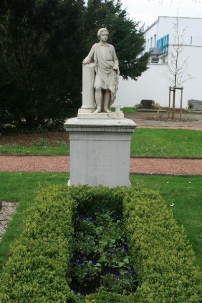 gesenkten Fackel, Statue auf schlichtem Rechtecksockel. |