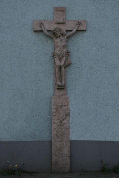 inschriftlich datiert 1664. Material: Sandstein. Wegekreuz mit barockem