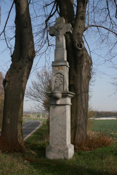 Hagelkreuz in Düren - Lendersdorf Denkmalbeschreibung: Hagelkreuz zwischen Kufferath und Lendersdorf, an der K 27, inschriftliche Datierung 1794. Ca. 2,50 m hohes Kreuz aus Blaustein; Sockel mit profiliertem Gesims; Kreuzpfeiler mit Konsole, darüber Schmerzensmutter im Flachrelief; Kreuz mit Eckrundungen, Korpus im Flachrelief; im Sockel verwitterte Inschrift.