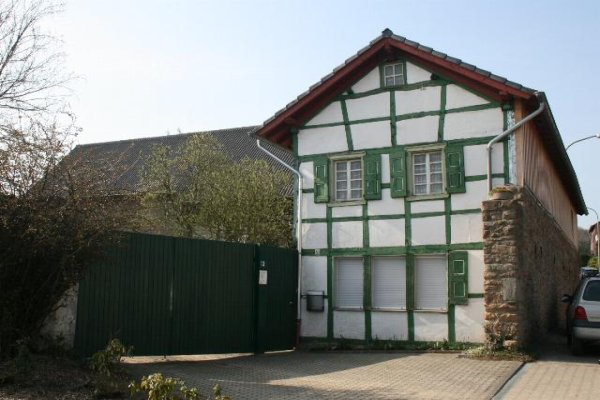Wohnhaus in Düren - Berzbuir Denkmalbeschreibung: Wohnhaus, erbaut 18. Jh. Wohnhaus und Stalltrakt eines ehemaligen alten Winkelhofes, Fachwerk auf straßenseitig hoher Bruchsteinmauer, Satteldach, Fenster im Erdgeschoß der Giebelseite verändert. |
