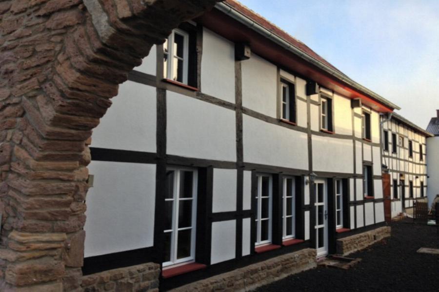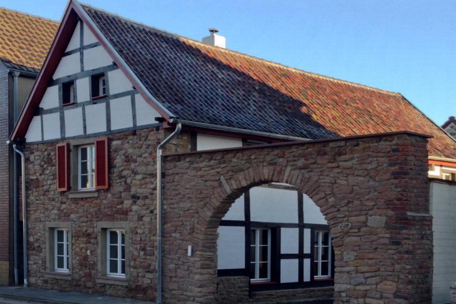 Fachwerkhaus in Düren - Lendersdorf Fotos: Christian Schmitz Denkmalbeschreibung: Haus Hüttenstraße 17 - 19, erbaut Ende 18. Jh. Giebelständiges, zweigeschossiges Fachwerkhaus mit Satteldach, Giebel aus Bruchsteinmauerwerk, im Anschluß rundbogige Tordurchfahrt.Lt. Eigentümer: Restauriert im Jahre 2013