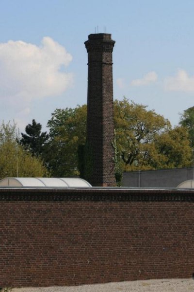 Industrieschornstein in Düren - Hoven Denkmalbeschreibung: Industrieschornstein auf dem Gelände der Firma Julius Hoesch, Birkesdorfer Straße, erbaut Mitte des 19. Jh. Sechseckschornstein aus Backstein (Feldbrandsteinen), im oberen Bereich mit Gesims und Bekrönung.