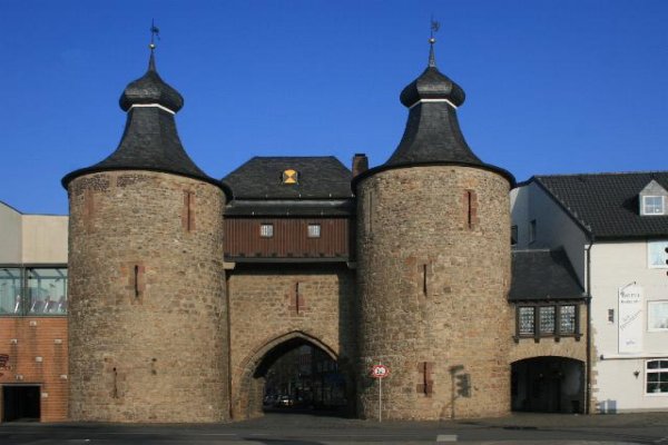 Hexenturm handelt es sich um eine Toranlage mit mittlerem Torhaus,