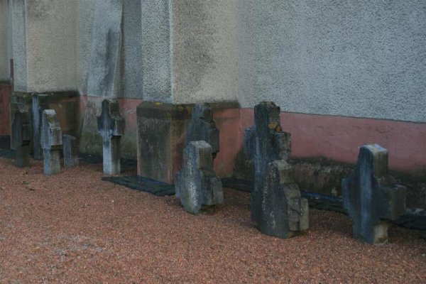 1832 erstellten Friedhofsmauer sind Grabkreuze des 17. und 18. Jh.