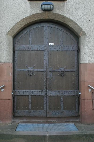 1 gotische Nische mit Eisengitter Rokoko-Konsoltischchen 3 Glocken im Turm