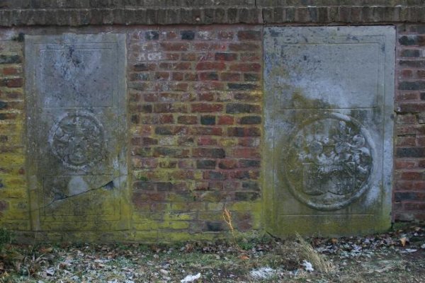 verwittert und beschädigte Grabplatten der Adeligen und einstigen
