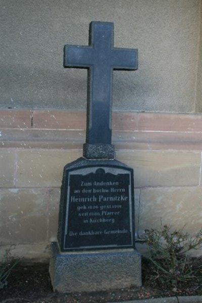 (bzw. Teile von Anlagen) Zum Denkmal gehören mehrere Grabkreuze und Grabplatten außerhalb der Kirche a) links vom Kircheingang: 4 Grabkreuze aus Blaustein (17. Jh.) und ein Obelisk aus Blaustein von 1823. b) Vor der östlichen Kirchhofsmauer: 6 Grabkreuze aus Blaustein (17./18. Jh.) c) An der nördl. Kirchhofmauer: Verwitterte und beschädigte Grabkreuze aus Blaustein. d)
