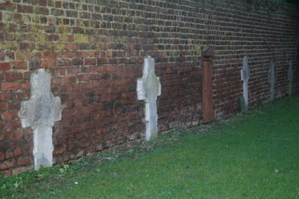 (Nordseite des Grundstücks der Pfarrkirche): - Zehn schmucklose Grabsteine aus dem 17./18. Jahrhundert, - Neun Grabkreuze aus weißem Sandstein, teilweise in einem guten Zustand, teilweise Fragmente, Schrift größtenteils schwer lesbar. -