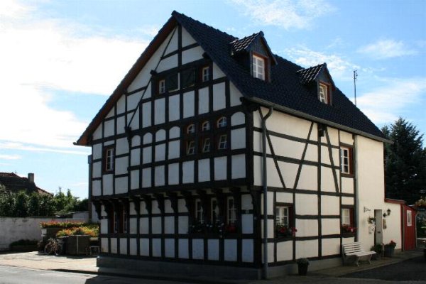 Fachwerk - Giebelhaus in Kreuzau - Drove Denkmalbeschreibung: Bei dem Objekt handelt es sich um ein 2-geschossiges Fachwerk-Giebelhaus. Das Haus wurde teilweise erneuert. An der linken Hausseite ein Anbau aus dem 18. Jahrhundert unter abgeschlepptem Satteldach. An der rückseitigen Giebelseite neuer Anbau. Das Haus bildet mit Haus Nr. 110 ein Doppelhaus.