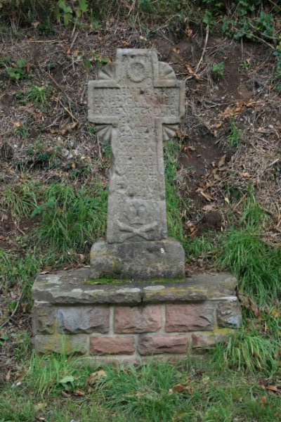 Sandstein und steht auf einem neueren Sockel mit der Inschrift: „Anno