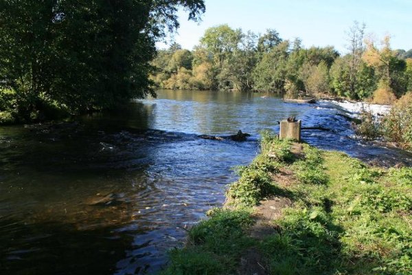 Mühlenteich Oberschneidhausener Teich in Kreuzau - Üdingen An diesem Wehr zweigt der Oberschneidhausener Teich ab. Denkmalbeschreibung: Der Oberschneidhausener Teich wurde 1769 für die Eisenschneidmühle gegraben. Noch im 18. Jahrhundert entstand eine zweite Eisenschneidmühlein in Oberschneidhausen. 1893 lag an dem oberen Abschnitt eine Papierfabrik, die im 2. Weltkrieg zerstört wurde. Die Ruine wurde vor einigen Jahren aus Sicherheitsgründen bis auf wenige Mauerreste und Relikte der ehemaligen Turbine abgebrochen. Der Teich erstreckt sich von seiner Ableitung aus der Rur bis zu seiner Rückführung in den Fluss über eine Länge von 300 – 400 m. Vor dem Fabrikstandort zweigt ein Mühlengraben ab, so dass das Fabrikgelände ehemals inselgleich umschlossen wurde. Der abzweigende Mühlengraben ist heute verlandet. Im Bereich des ehemaligen Fabrikgeländes sind an beiden Teichseiten Mauerstücke erhalten.